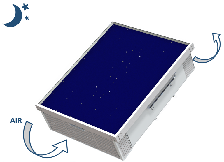 At night, no water is produced, but the generator is not idle. Moisture from the air is adsorbed by a layer of special hygroscopic material (adsorbent).